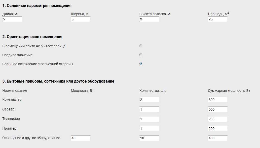 Рассчитать необходимую мощностью устройства можно самостоятельно, но проще это сделать в специальном калькуляторе — такие можно найти на сайтах производителей. Например, Mitsubishi Electric предлагает учитывать не только параметры помещения, но и количество электронных приборов и даже людей, которые находятся в комнате.