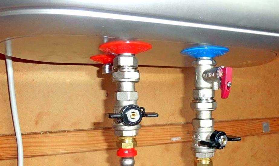 Затем производим открытие холодного вентиля (обозначенного синим цветом), затем горячего (красным цветом). Обязательно соблюсти именно эту поочередность включения. Потом открываем на смесителе кран горячей воды и ждем того момента, пока из бака удалится весь воздух, и он наполнится полностью жидкостью.