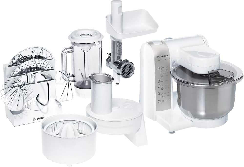 Компактный и стильный прибор. В комплекте блендер, мясорубка, тестораскатка и кофемолка. Также 8 дополнительных насадок и 8 скоростей.