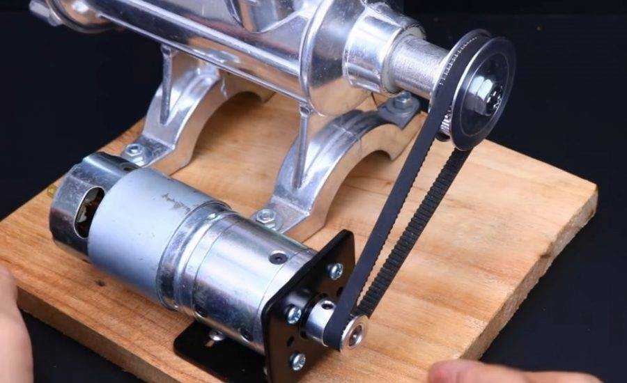 Для сборки электроагрегата берем ручную мясорубку без ручки вращения. Если по какой-то причине такой агрегат отсутствует, не стоит волноваться — стоит он недорого, а на базарных развалах есть вполне живые экземпляры.