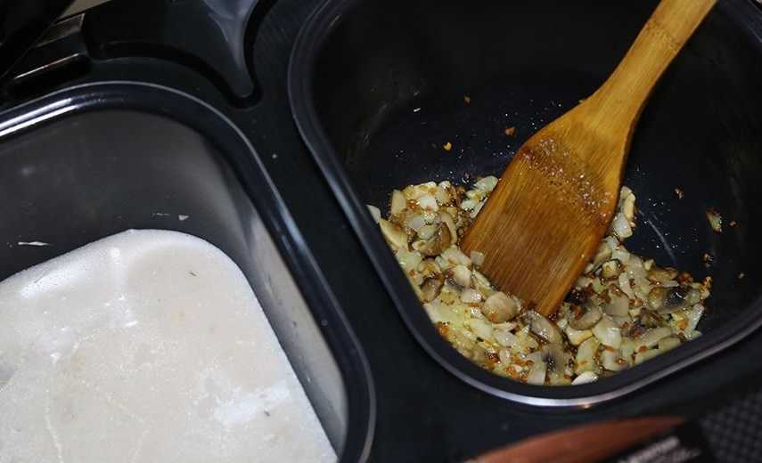 Наличие двух автономных в управлении чаш удобно прежде всего для сложных блюд. Например, когда в одной чаше готовится суп, а в другой — делается обжарка шампиньонов для него же. И одна программа никак не мешает другой.