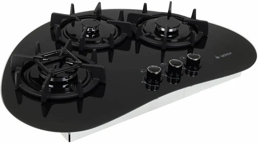 Среднегабаритные – варочные панели шириной от 45 см оснащенные 3-4 горелками. В трех конфорочных приборах конфорки расположены в виде треугольника с правосторонней вершиной.