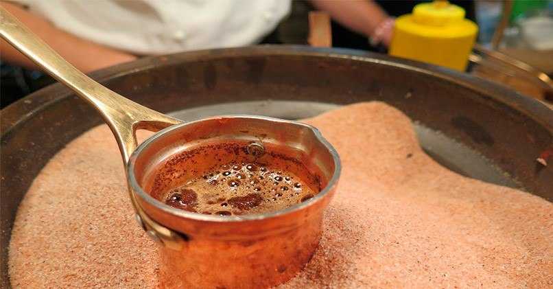 В принципе, этот процесс можно организовать и в домашних условиях. Нужно взять большую сковороду с высокими бортиками, лучше чугунную. В зоомагазинах продается очищенный мелкий песок для аквариумов – он отлично подойдет для домашней “восточной кофейни”.