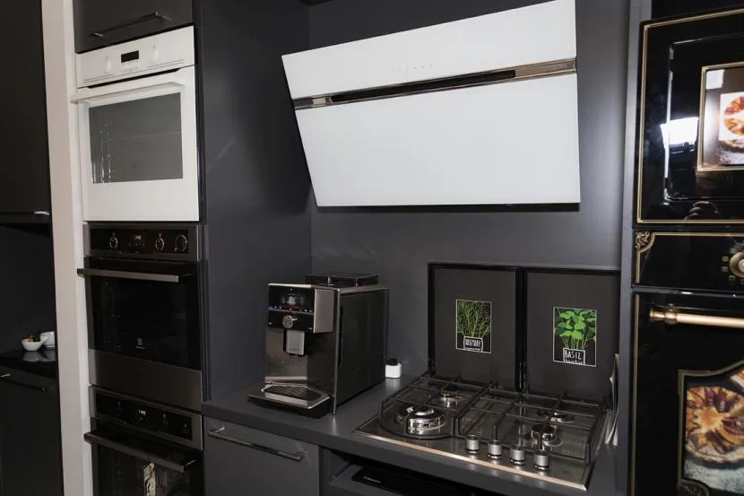 - Габариты. Панели с угловым наклоном более компактные и лучше подходят для тесных кухонь. Приспособления-куполы занимают много места и вынуждают пожертвовать пространством, которое в ином случае можно было бы отвести под дополнительный шкафчик.