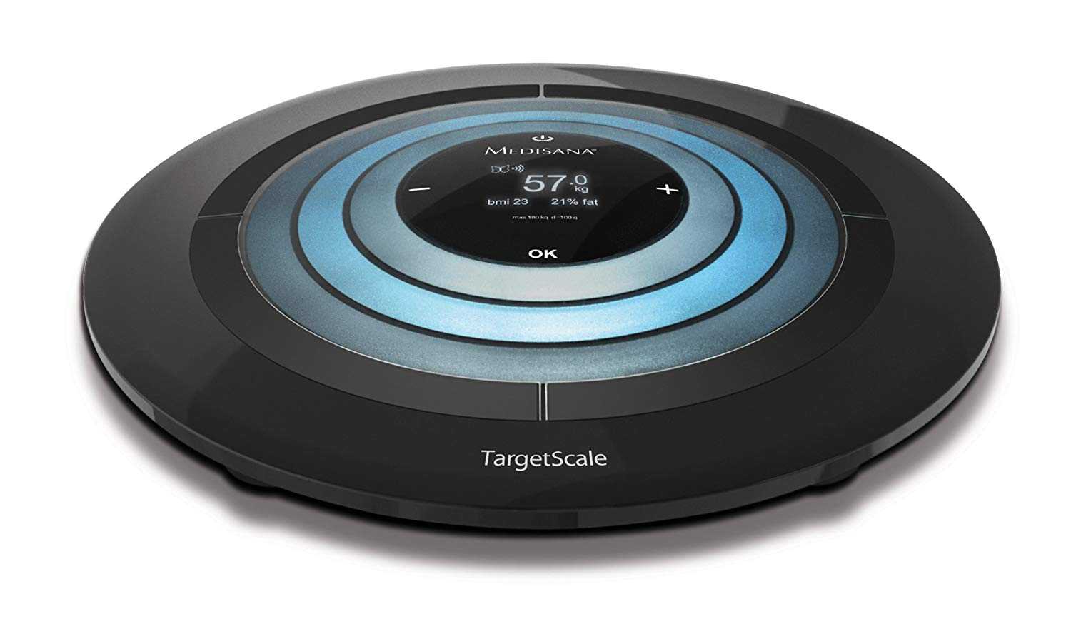 Пальму первенства занимают многофункциональные весы Medisana 40419 TargetScale. Позволить себе приобрести их могут далеко не все, их цена достигает 15 тысяч рублей. Ими можно управлять с помощью мобильного телефона или другого подобного гаджета на платформе Android или IOS, достаточно синхронизировать их. Принцип работы электронных весов можно оценить сразу, показания будут перед глазами, а не где-то внизу у ног. Можно будет выводить на дисплей графики, показывающие динамику веса, жировых отложений, артериального давления, температуры тела и уровня сахара. Комфорт в управлении сочетается с великолепным внешним оформлением. Говоря простыми словами, «не весы, а сказка».
