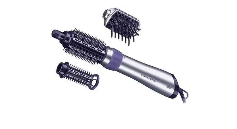 Одним из лидеров обзора является модель от легендарной компании «Браун». В комплекте предусмотрены 2 щётки разного диаметра и насадка для придания причёске дополнительного объёма. Стайлер простой и удобно размещается в руке. Электропровод имеет шарнирное соединение, поэтому никогда не запутывается.