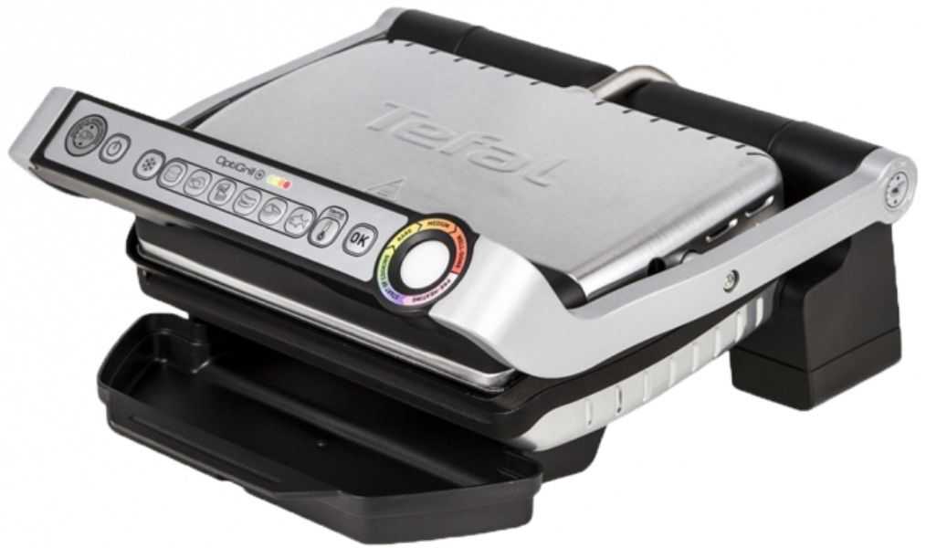 Эта модель превосходно прожаривает мясо и другие продукты. Блюда порадуют домочадцев вкусовыми качествами, поскольку в этом приборе предусмотрена современная технология OptiGrill+ от компании Tefal.
