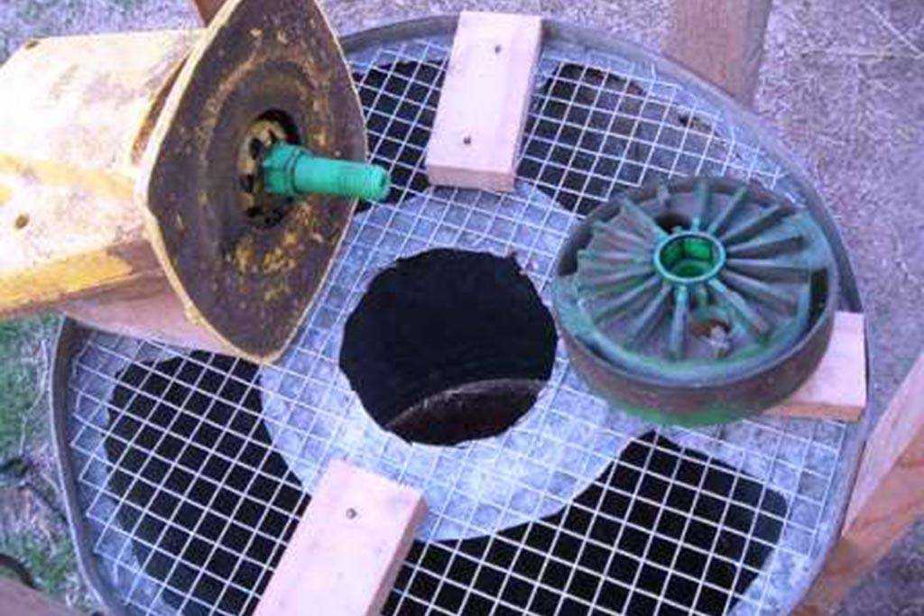 Деревянные куски фиксируют саморезами, закручивая их изнутри бака в металлические перемычки между вырезанными трапециями. Таким способом сетка надежно прикрепляется к дну емкости.