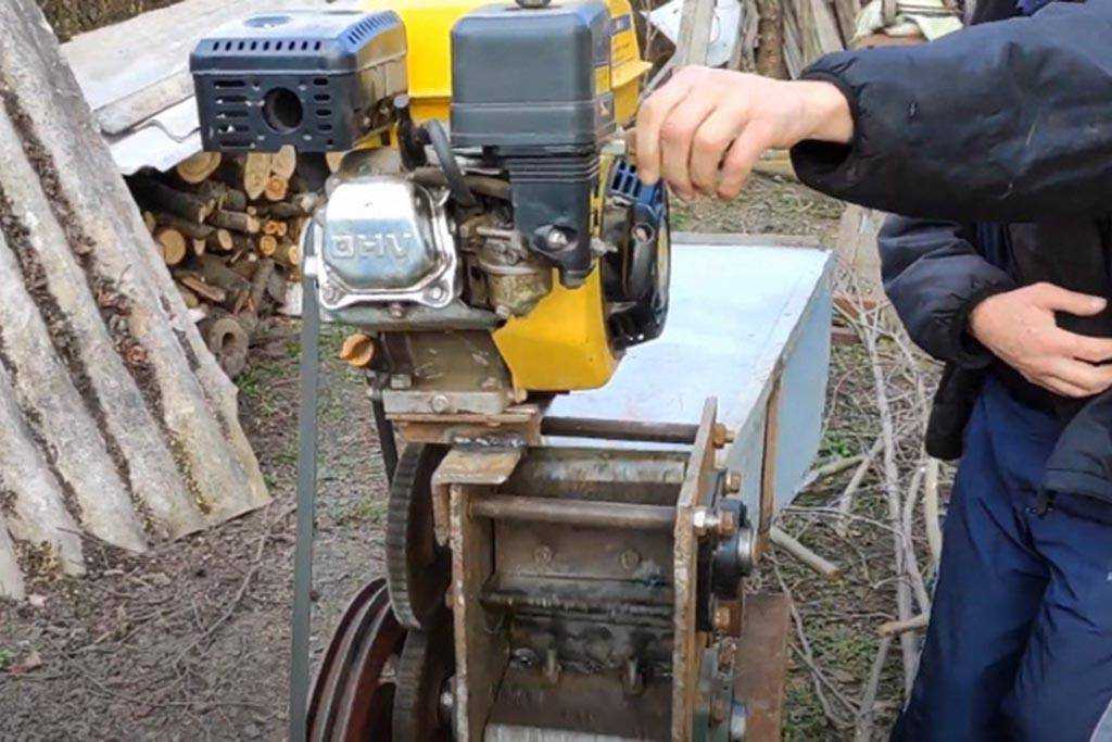 Используют вариант кожуха из любого приведенного выше варианта. Особенности конструкции измельчителя на основе бензинового двигателя от мотоблока: