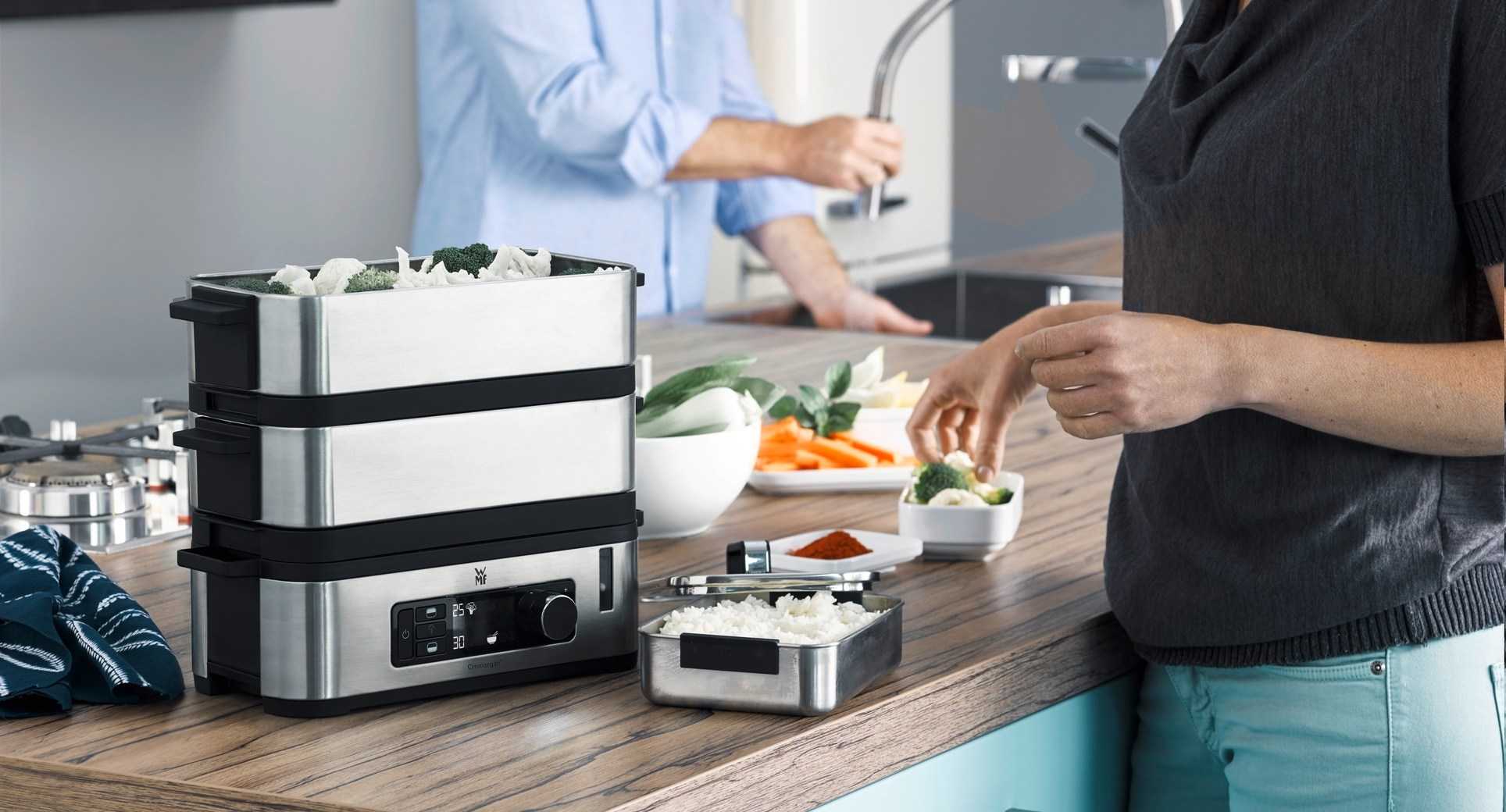 С помощью оборудования владельцы готовят еду, используя минимальное кухонное пространство. Примечательно, что агрегат обладает полным перечнем элементов для создания вкусных блюд — пользователю необходимо добавить воды и разместить продукты питания. Благодаря функциям агрегата, не нужно контролировать процесс, так как звуковая индикация сообщит о завершении работы.