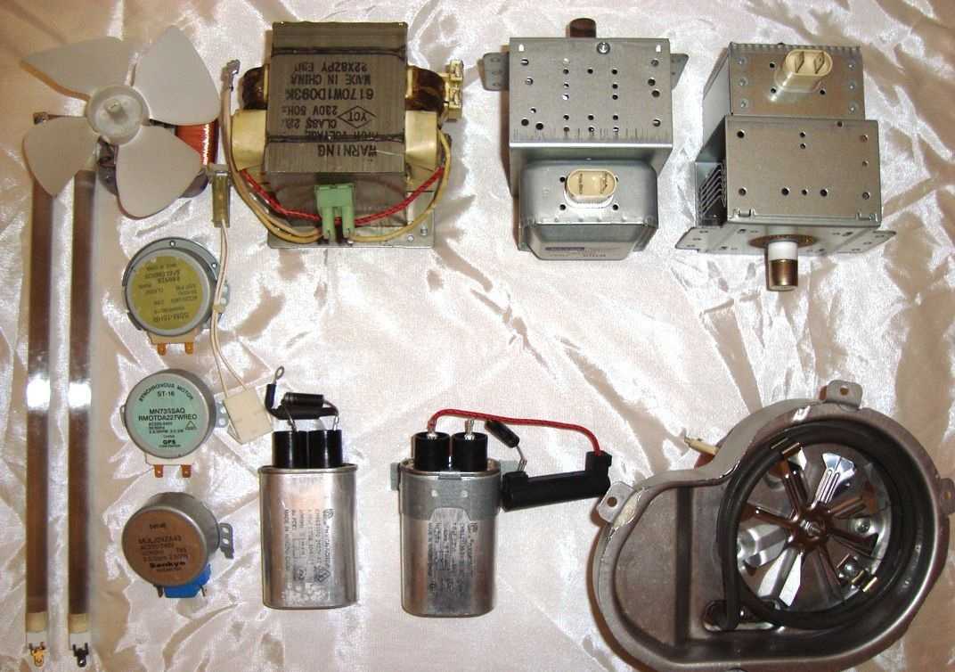 Перед тем, как вы примете решение чинить печку самостоятельно, следует разобраться с конструкцией и устройством прибора. Обычная СВЧ-печь состоит из магнетрона, конденсатора, трансформатора, диода и вентилятора. У современных моделей можно найти вспомогательные элементы, например гриль.