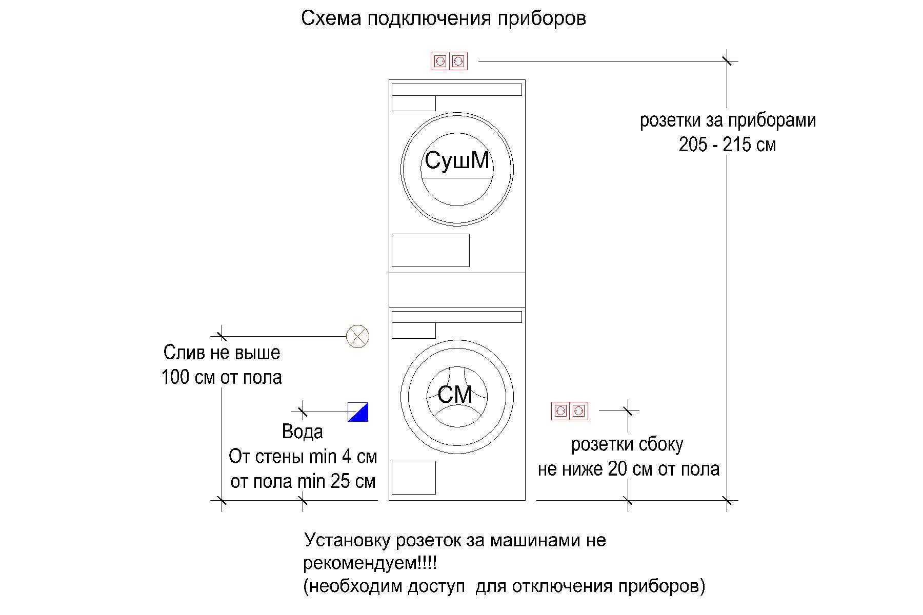 Существует четыре основных схемы установки и подключения сушилки в квартире или частном доме. Какой из них выбрать — зависит от размеров помещения, от интерьера и от типа машины: