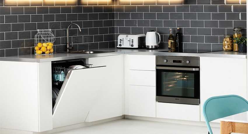 - использование свободного пространства. Нужно сразу продумать место размещения посудомойки, чтобы дверца свободно открывалась;