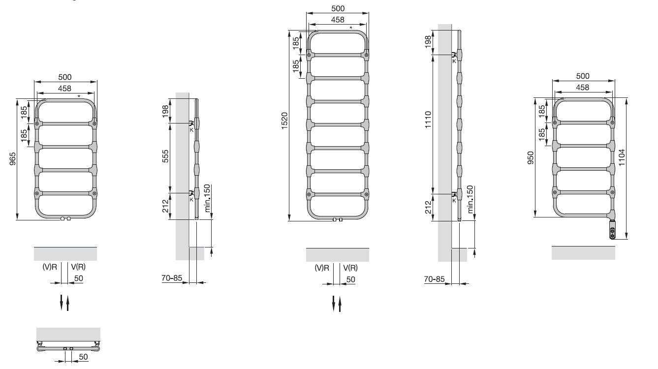 Приобретение прибора для сушки полотенец, обусловлено дальнейшим его монтажом в требуемое место. В зависимости от расстояния между трубами подключения, выбирают требуемый вариант. При проведении ремонта в квартире или доме, целесообразно приобретение техники до прокладки подводимых коммуникаций. Подвод труб в таком случае производят по размеру сантехнического прибора.
