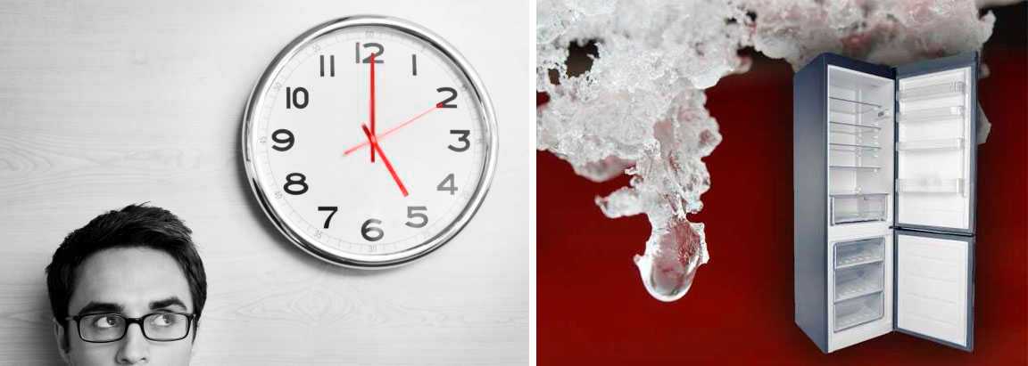 Размораживается холодильник до 10 часов, поэтому часто хозяйки оставляют рефрижератор без питания на ночь. Однако утром владельца ждет неприятный сюрприз в виде сильно разлившейся воды. Это характерно только для старых моделей. Чем старше холодильник, тем больше времени ему требуется на полную разморозку. Современные модели No Frost на автомате избавятся от лишней жидкости всего за 3 часа.