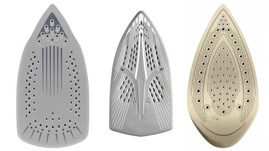 Сейчас производители гладильной техники используют для подошвы разные материалы. Многие из них сами обладают антипригарными свойствами, другие покрываются специальным напылением. Это помогает избежать пригорания материала, образования заломов и темных пятен.