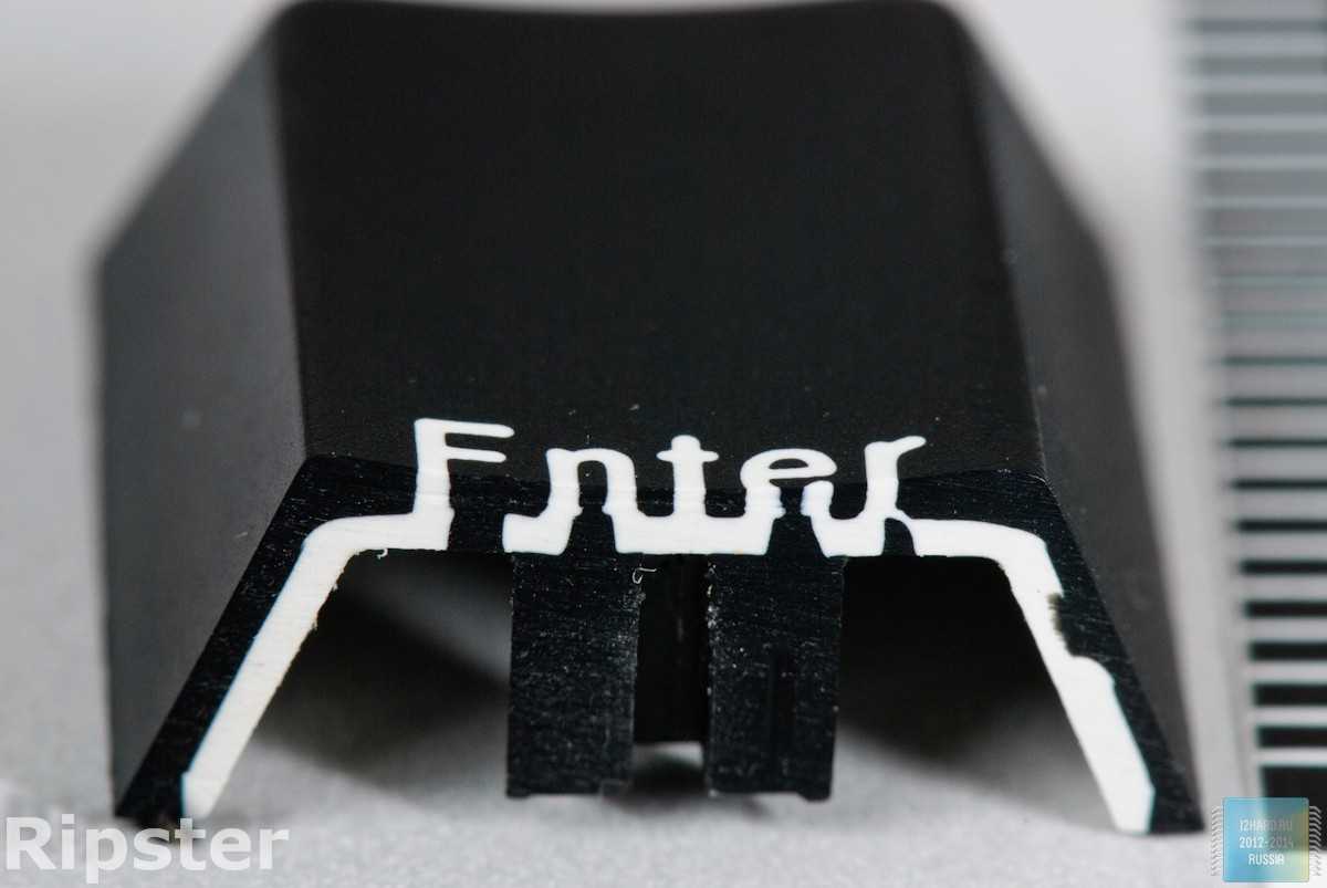 Что касается клавиатур с подсветкой, то гравировка — это самый подходящий вариант, позволяющий сделать символы прозрачными. Однако, опять же, на тёмных клавиатурах с выключенной подсветкой в реальности такие символы практически не читаются ни при каком освещении.