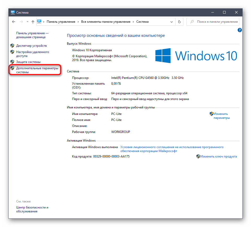 в перечне доступных к редактированию параметров (находится в левой части окна) выбрать «Дополнительные параметры системы»;