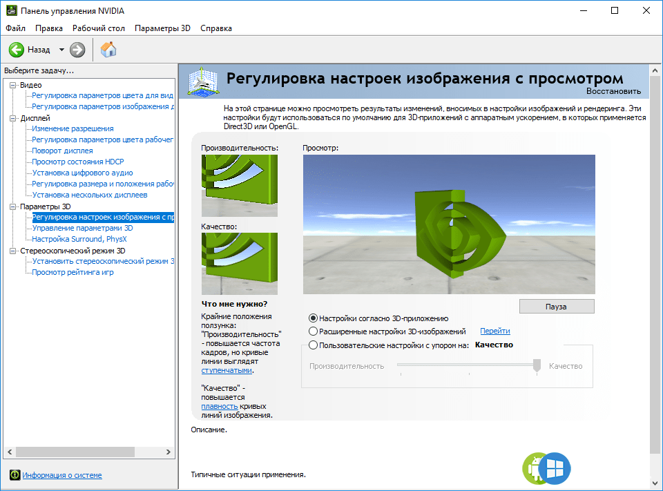 Видеокарты типа AMD и NVIDIA разрабатываются с дополнительным приложением, которое называется GUI (Graphical User Interface). В указанном блоке информации для дополнительных настроек расширения разработчики оставили отдельный параметр. В данном случае в контекстном перечне рабочего стола ПК (появится, если кликнуть по пустому месту рабочего стола правой клавишей мышки) отобразится пункт «Панель управления NVIDIA».
