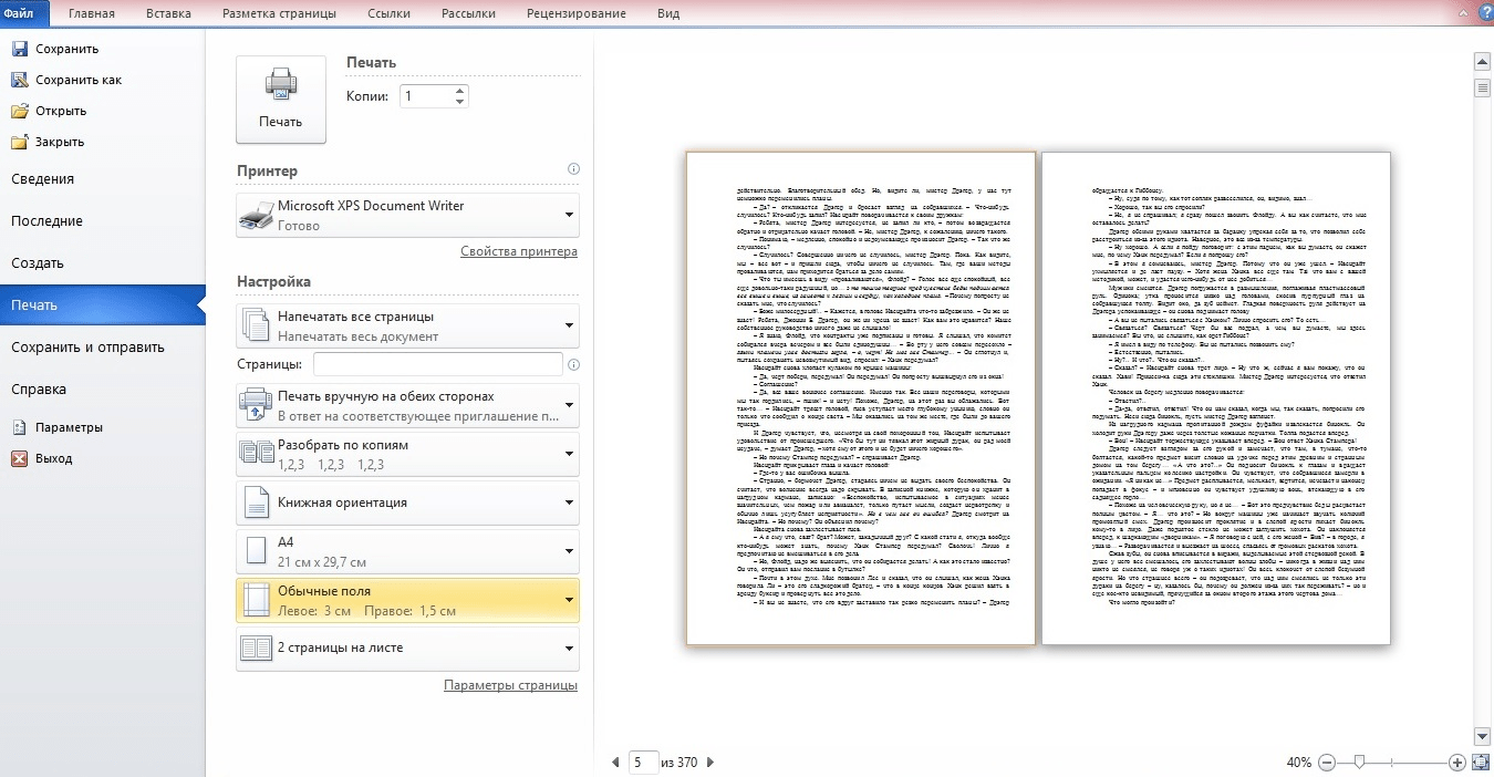 - В результате мы получим текст, разбитый на страницы, готовые для печати в виде книги.