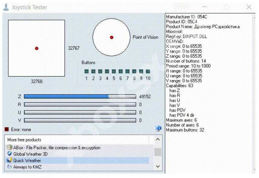 Приложение Joystick Tester — удобный и простой в применении софт, необходимый при проверке нового или старого джойстика.