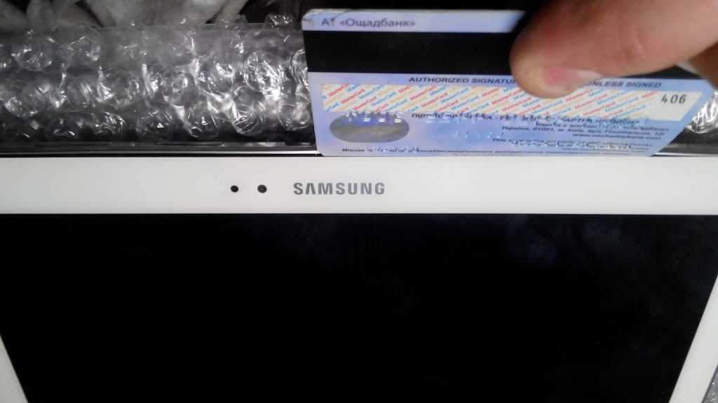 Ремонт планшета начал с его разборки. Корпус планшета скреплен только защелками, так что для разборки необходима только старая пластиковая карта, или уже готовый съемник.