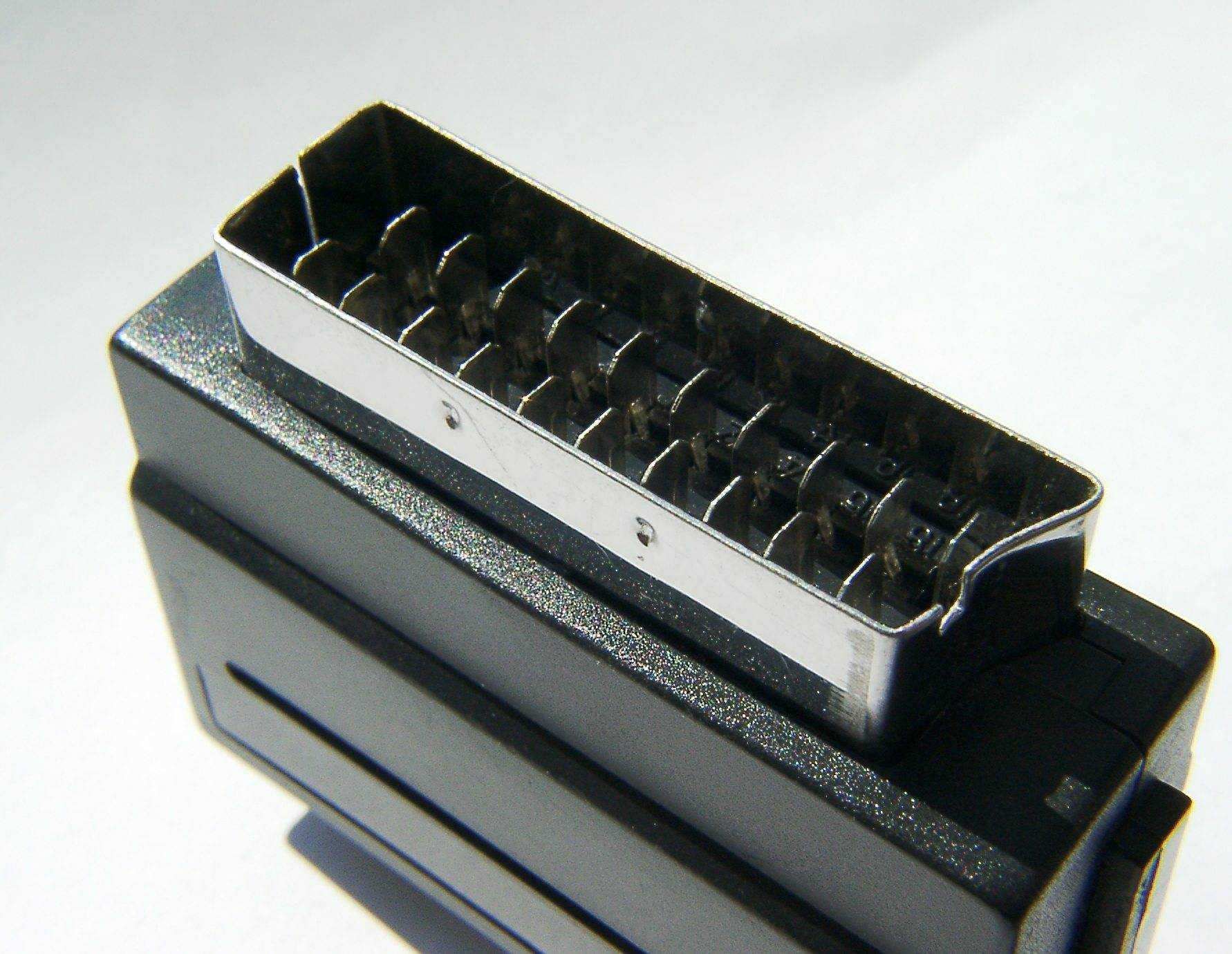 - SCART. Кабель используется преимущество для соединения техники, поставляемой на европейский рынок. Внешнее это большой разъем/штекер с множеством контактов.