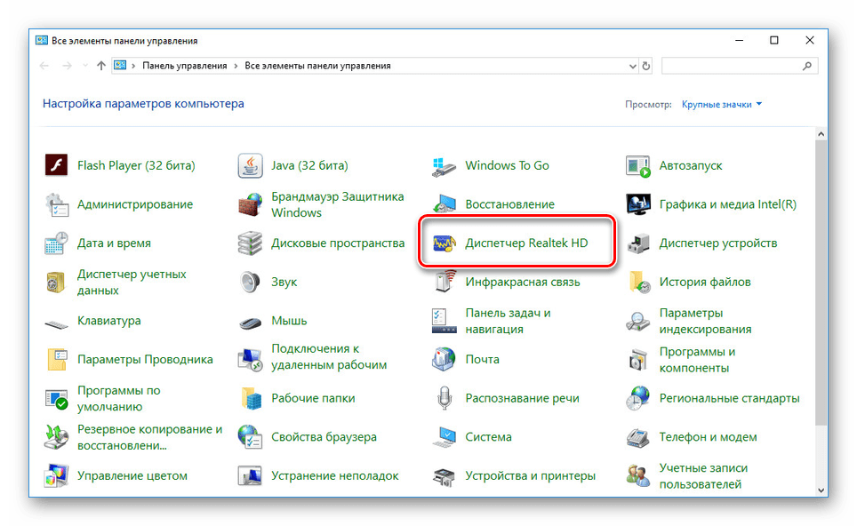 - Перейдите в параметры своей звуковой карты. Эта деталь установлена на каждый компьютер.