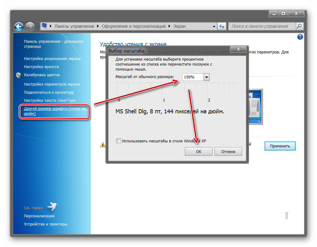 В левой части окна кликните на надпись «Другой размер шрифта (точек на дюйм)»