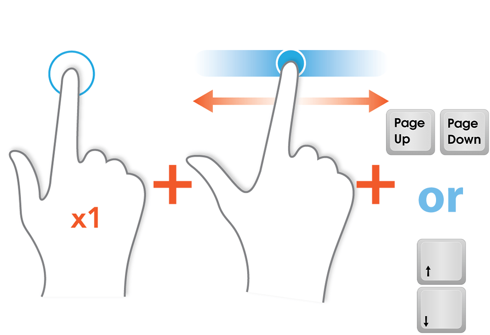 Если управление клавишами не подходит, коснитесь сенсорной панели двумя пальцами и одновременно поднимайте или опускайте их. Когда площадь тачпада закончится, верните пальцы на исходную позицию и повторите то же самое столько раз, сколько нужно. Такой тип прокрутки лучше всего заменяет прокрутку колесиком мыши, поскольку тоже позволяет управлять ее скоростью.
