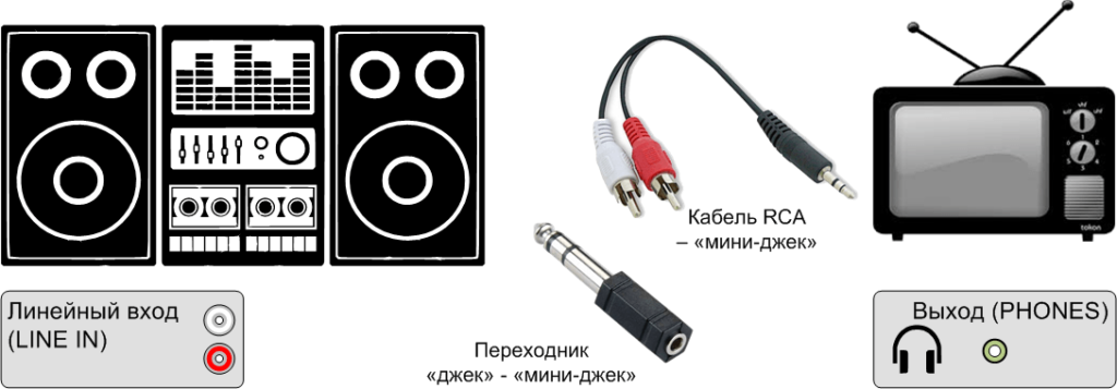 Что вам понадобится: переходной кабель RCA-mini jack или переходный кабель RCA-RCA.