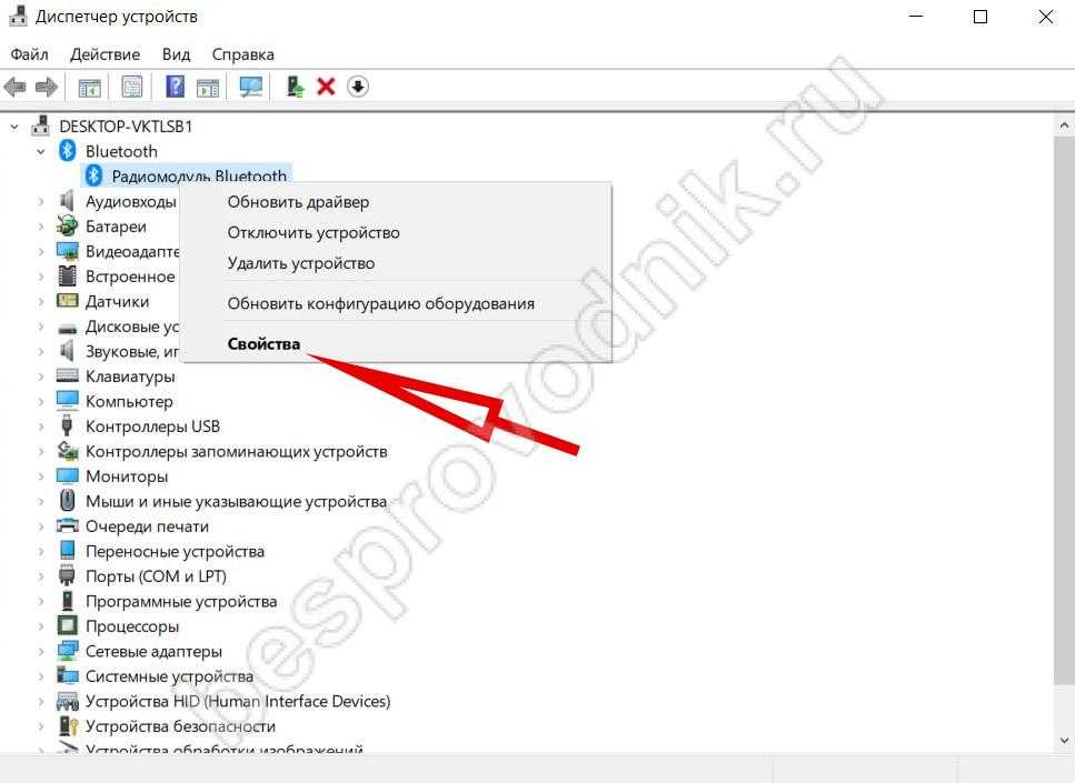 Выяснить производителя радиомуля, установленного в лэптопе: в «Диспетчере устройств» кликом правой кнопки по названию радиомодуля вызвать меню и выбрать «Свойства».