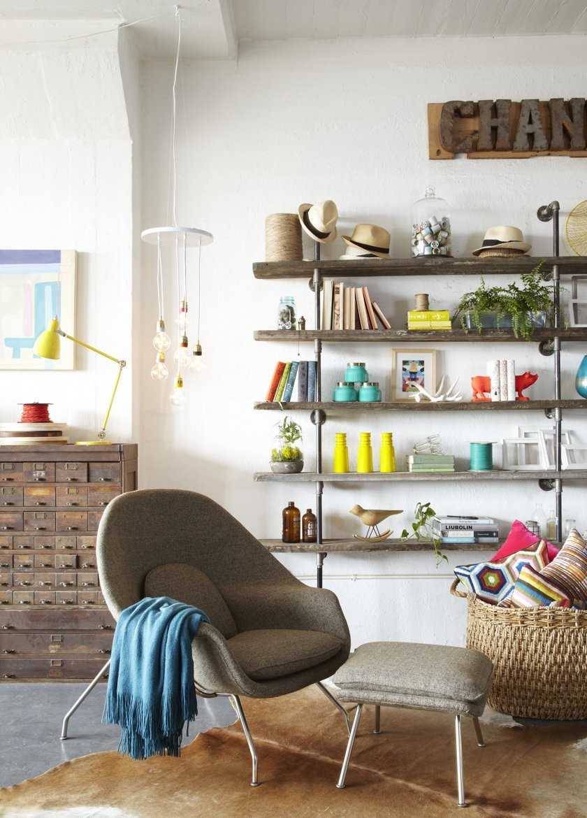 Виды настенных полок для оформления гостиной
