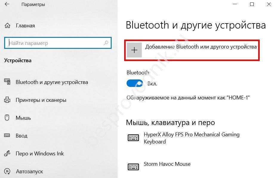 Нажимаем на «Добавление Bluetooth или другого устройства».