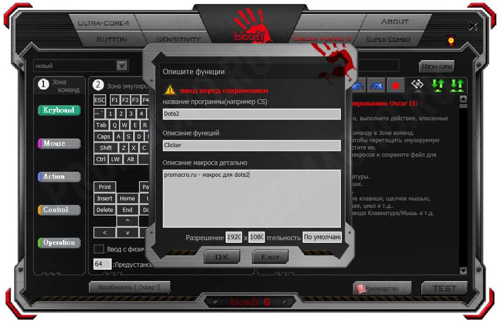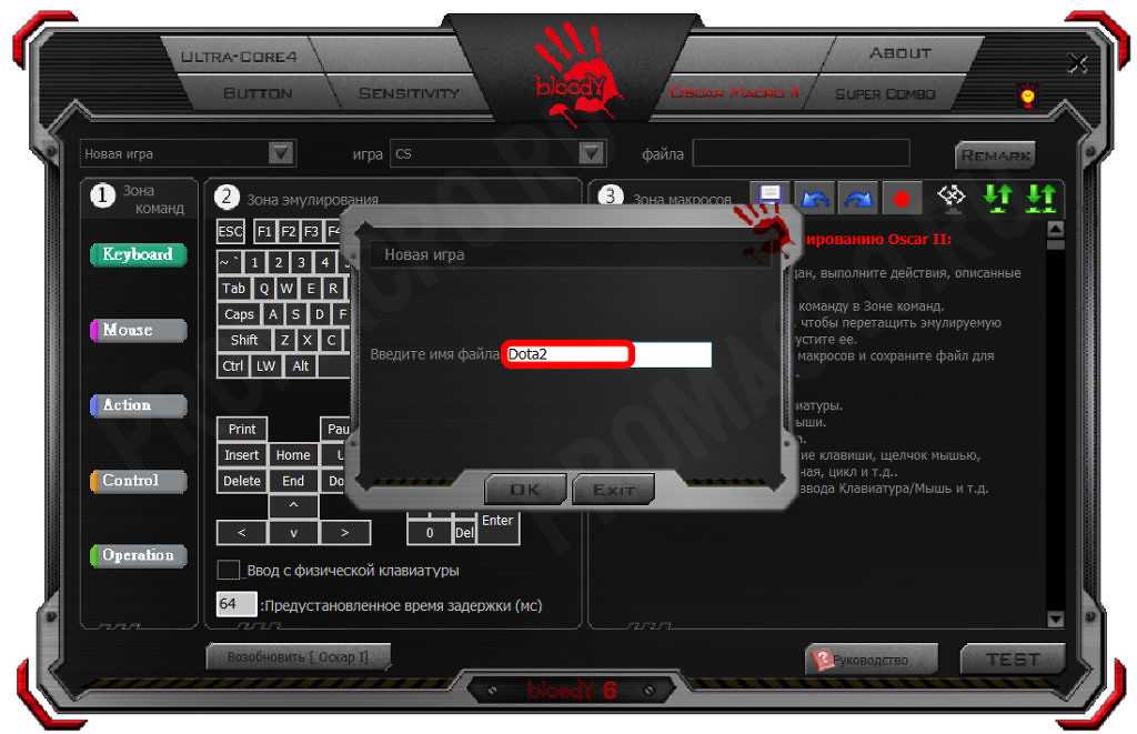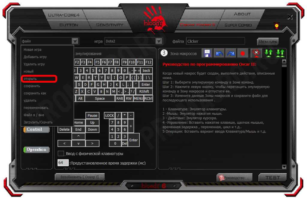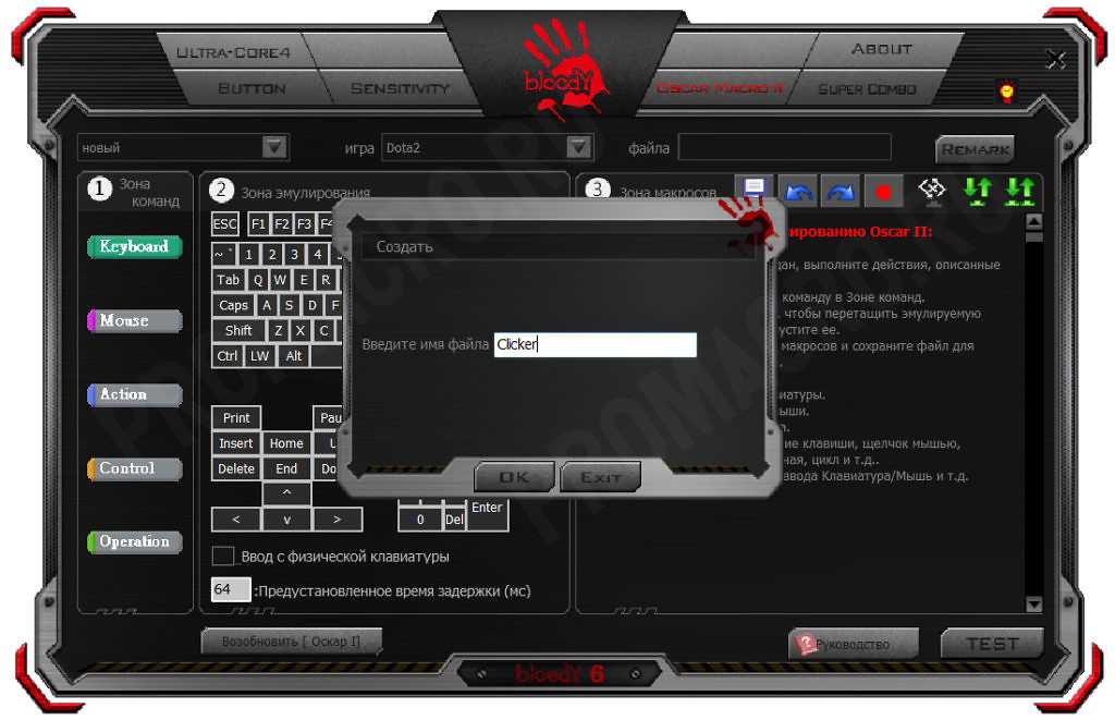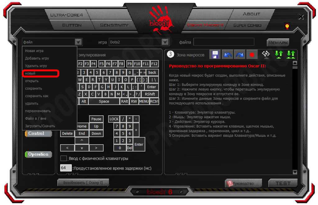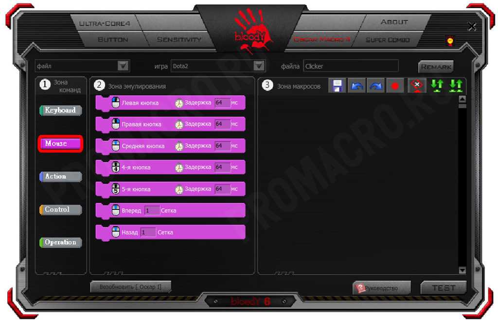 Заходим в программу Bloody и открываем вкладку Oscar Macro.