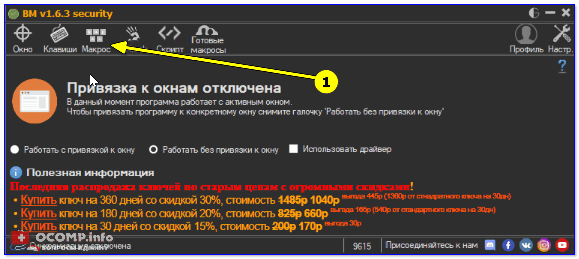 Чтобы ваши настройки и макросы не потерялись лучше сделать это сразу. Ниже находятся переключатели, которые открывают вкладки в текущем либо новом окне. В основном окне программы вы видите текущую вкладку и сразу после запуска программы в ней предлагается выбрать режим привязки к окнам.