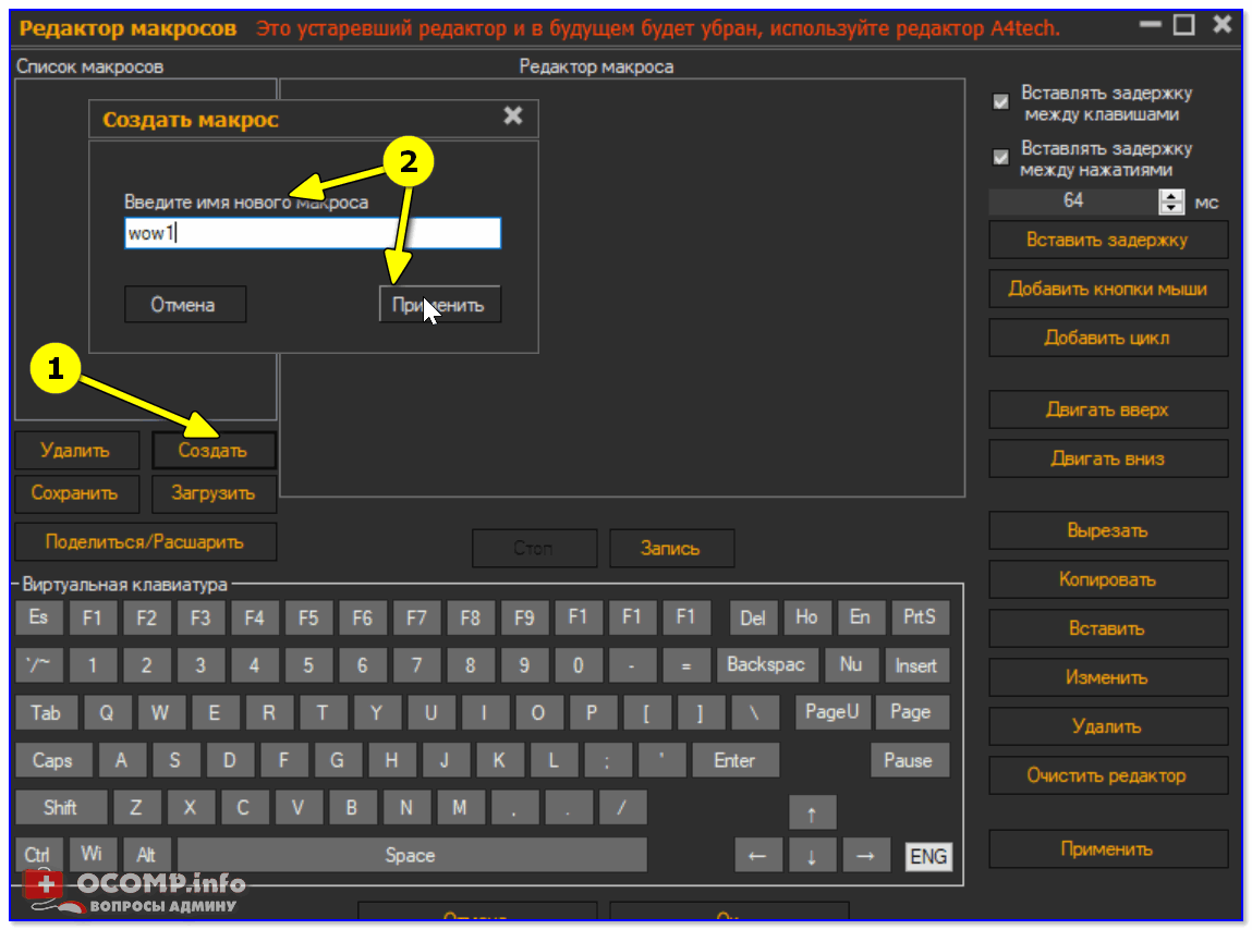 Далее нажать кнопку «Создать макрос» и дать ему имя (лучше использовать название игры или приложения, для которого макрос создается, чтобы вы по имени могли легко сориентировать к чему и зачем это. ).