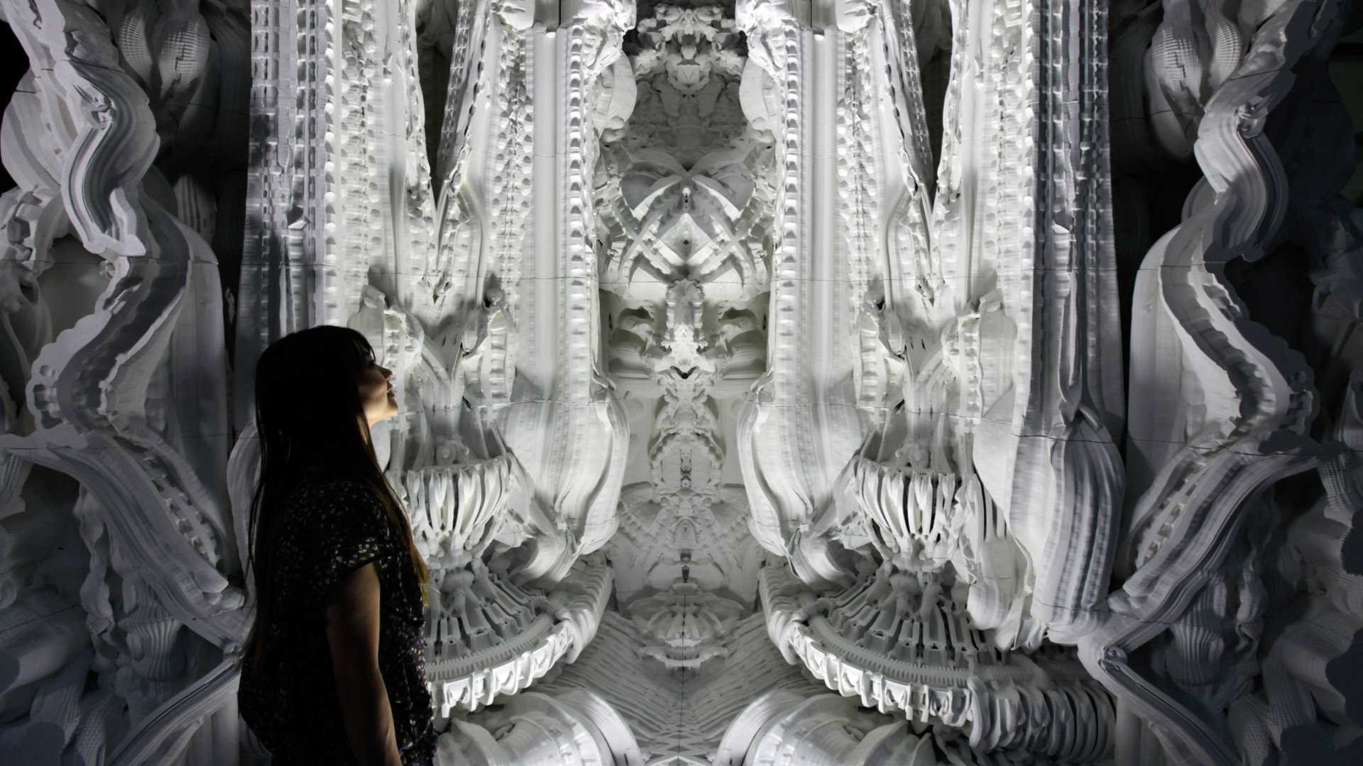 Комнаты и дома. Дизайнеры Бенджамина Дилленбургер и Микаэль Ансмейер напечатали из мелкозернистого песка комнату площадью 16 м2. Она вообще не имеет углов и создана в стиле фильма «Чужой».