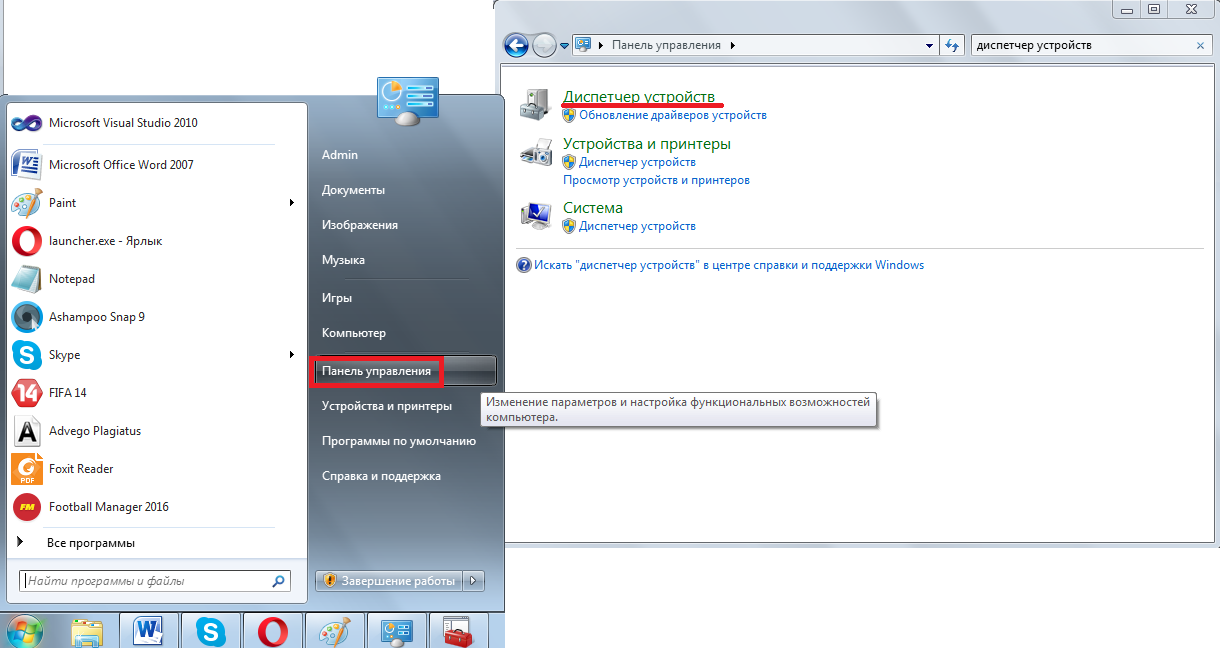 откройте меню «Пуск» (Windows), затем «Панель управления». найдите там «Диспетчер устройств» ;