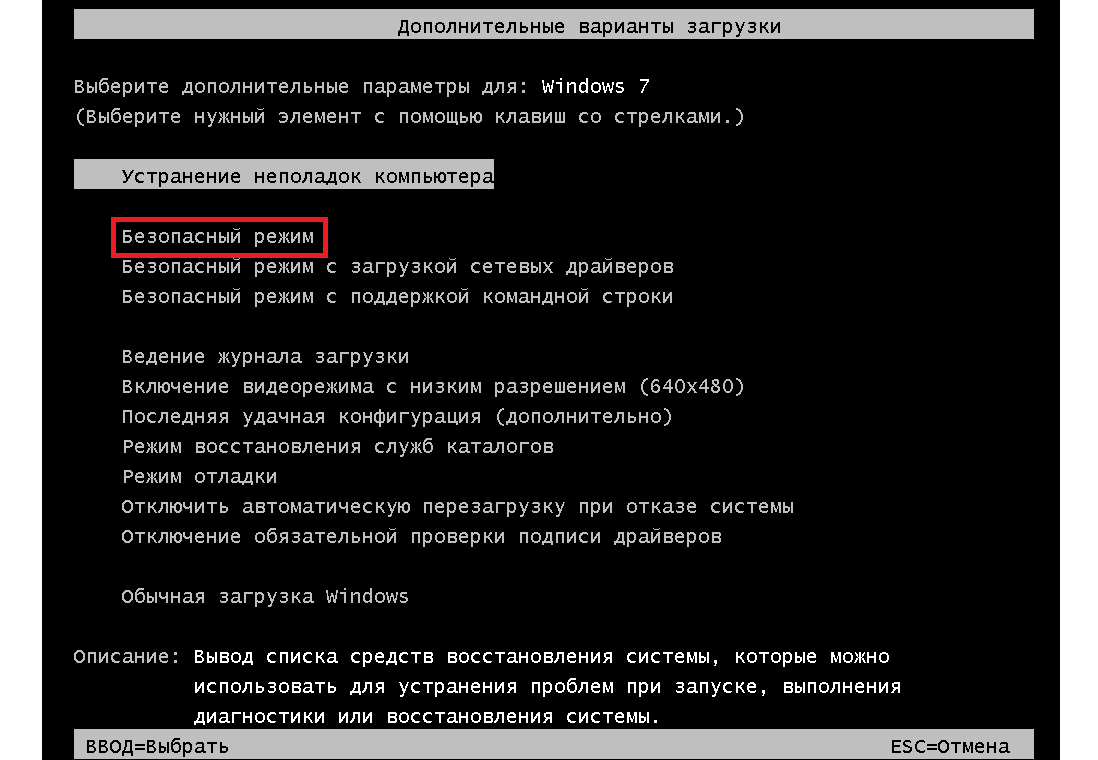 1. Загрузиться из-под безопасного режима без драйверов. Для этого перезагрузите компьютер и сразу же начните нажимать кнопку F8. Среди вариантов загрузки выберете «Безопасный режим» .