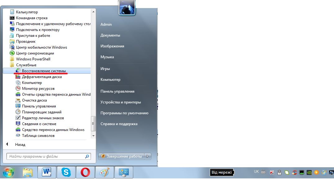 - после этого зайти в раздел «Служебные» и нажать на пункт «Восстановление системы» ;