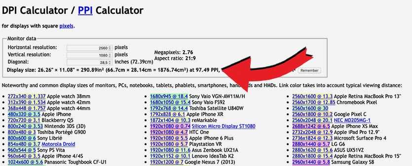Как рассчитать значение PPI для монитора