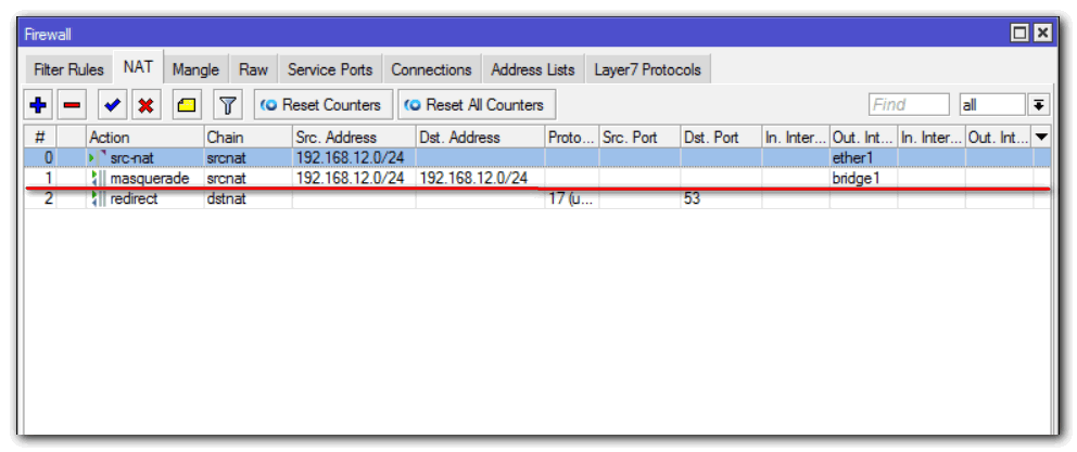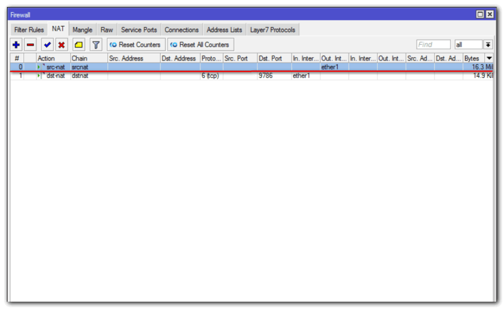 - Выбираем цепочку srcnat;
