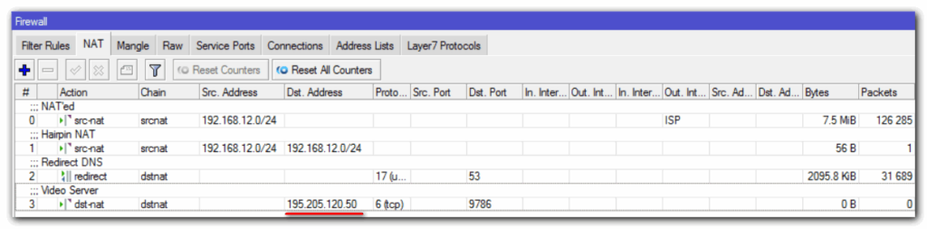 Чтобы избежать проблему, описанную выше, выполним настройку hairpin NAT на MikroTik. При получение статического айпи от поставщика интернет-услуг, советуем использовать правило Src-nat: