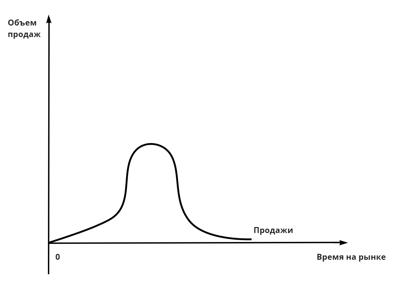 Кривая характерна для неудачных товаров, которые не пользуются у потребителей спросом. Людям может не нравиться качество продукта, его свойства или цена. Например, такое было у одной модели смартфонов Samsung, которые начали сами взрываться.