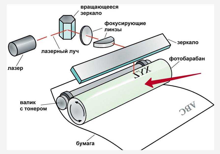 - Потом лист попадает в печку, где порошок «прилипает» к бумаге. Но это происходит только в тех местах, где луч лазера изменил заряд поверхности фотовала.