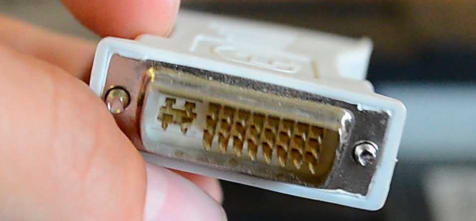 Теперь этот кабель с переходником мы вставляем в DVI порт на системнике. Получается так: