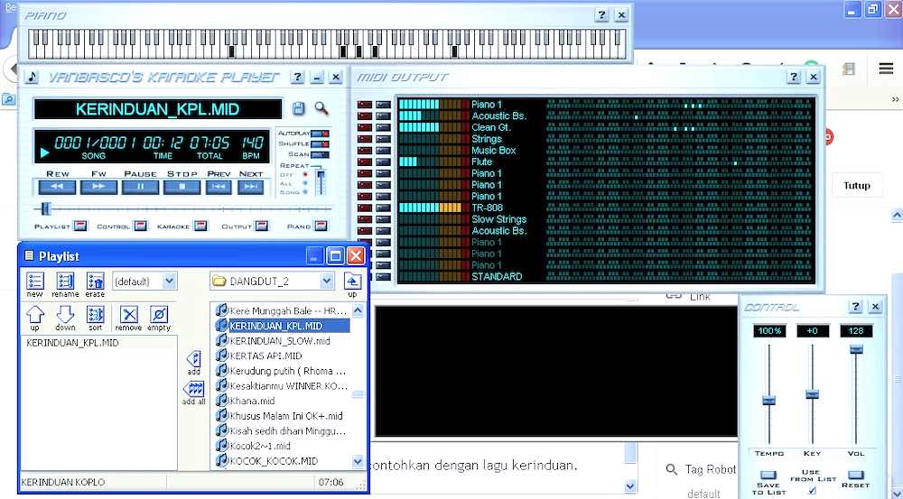 Программа поддерживает файлы форматов MIDI и KAR и предлагает такие функции: