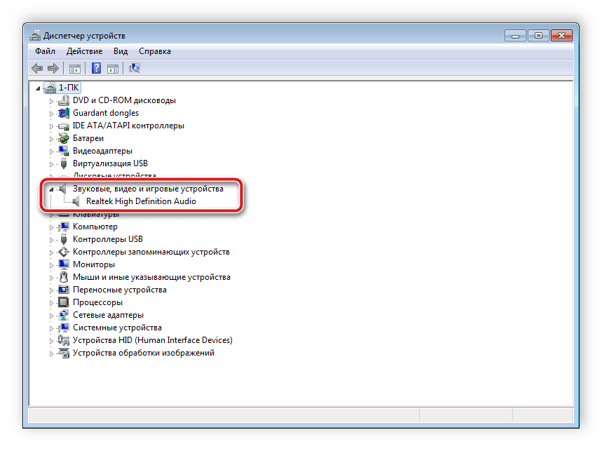 Здесь вы должны найти строку с аудиодрайвером. Если он отсутствует, произведите его установку любым удобным способом. Подробные инструкции вы найдете в наших статьях по ссылкам ниже.
