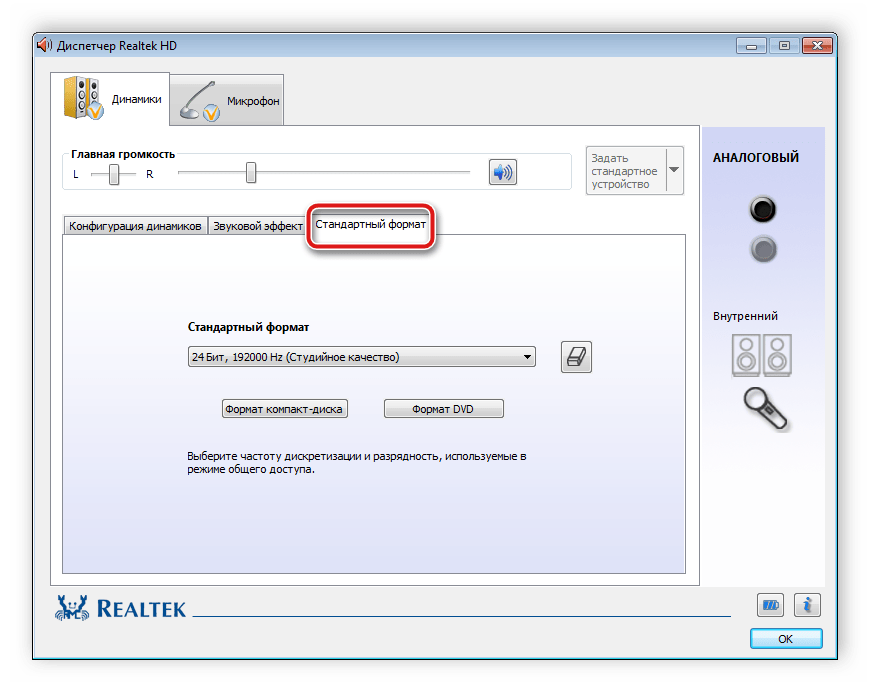 Большинство встроенных звуковых карт используют стандарт HD Audio. Самым распространенным пакетом программного обеспечения на данный момент является Realtek HD Audio. С помощью этого софта осуществляется настройка воспроизведения и записи. А выполнить это вручную можно так: